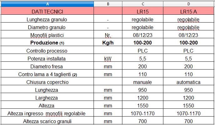 The LR15-A (Automatic) Pelletizer brings together all the solutions of the simple model integrating a new device that allows the operator to automatically open and close the cutter cover. The device has eliminated the closing knobs that the operator must continually screw and unscrew in order to open the cutter and proceed with the cleaning operations necessary during the color or material change.