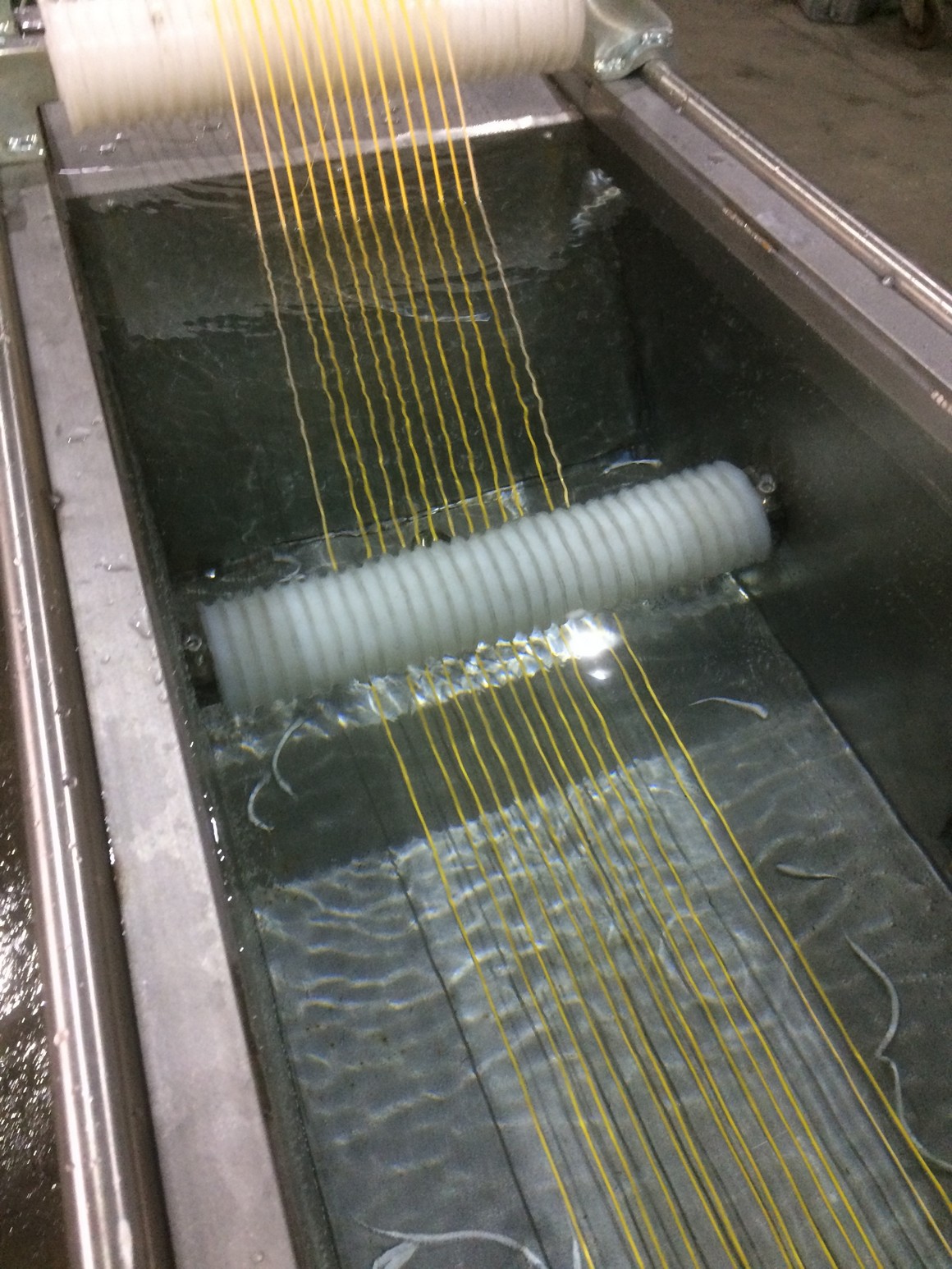 Sono dotate di un rullo affondatore a 5 pozioni per facilitare l’esatta introduzione dello spaghetto fuso nell’acqua di raffreddamento ed i rulli sono costruiti con materiali tali da ridurre l’accumulo della corrente elettrostatica sugli spaghetti